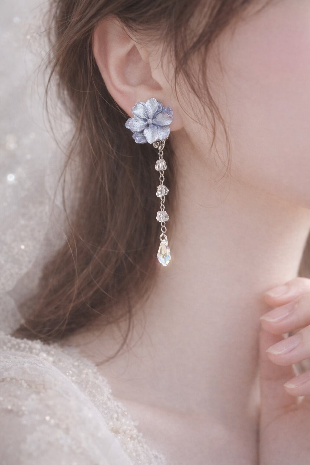 耳元でまっすぐ下に揺れるラインが、