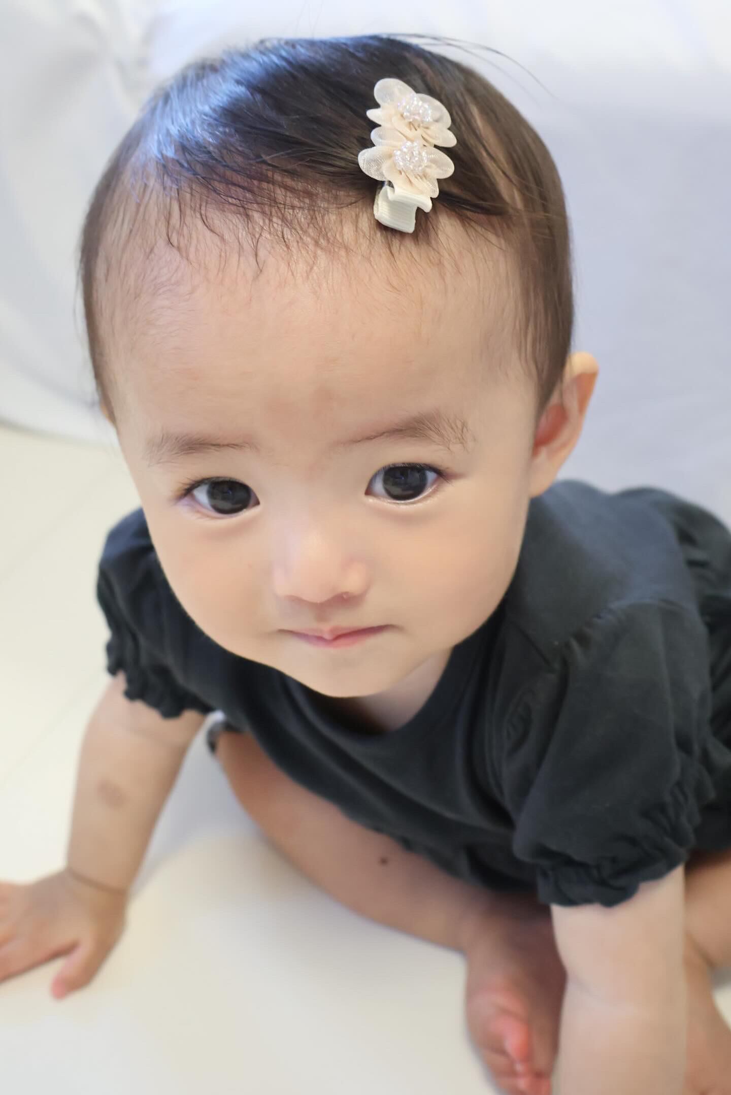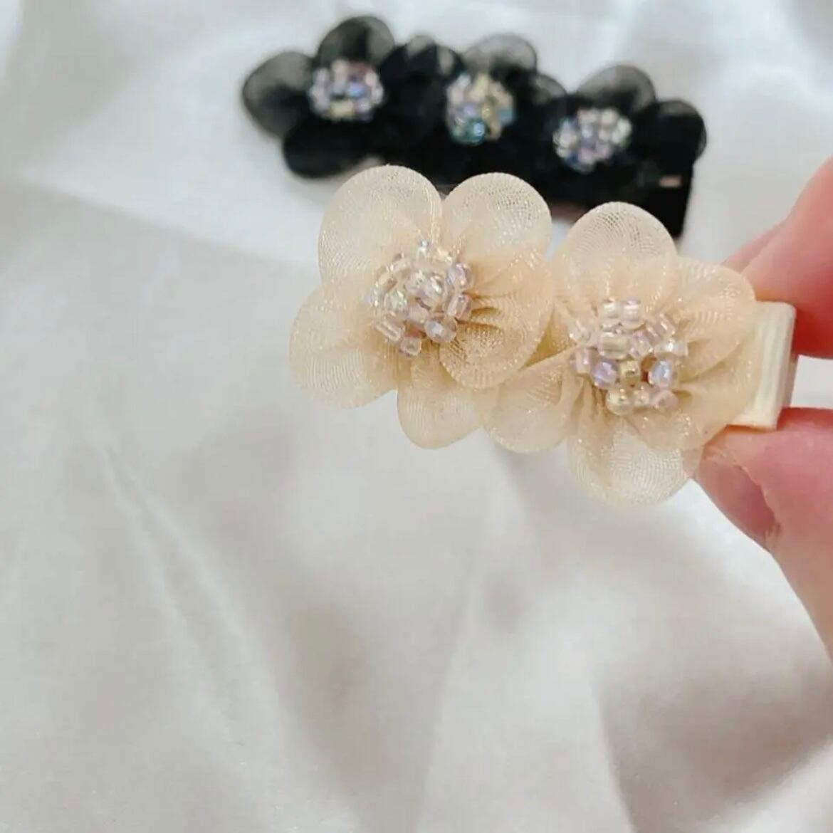 ベージュ お花2個 オーガンジーフラワーヘアクリップ