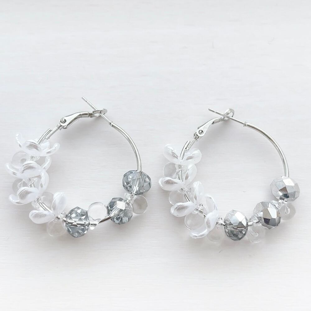 -plume-シルバー「華やかで存在感抜群!キラキラビーズを使用した大ぶりピアス」